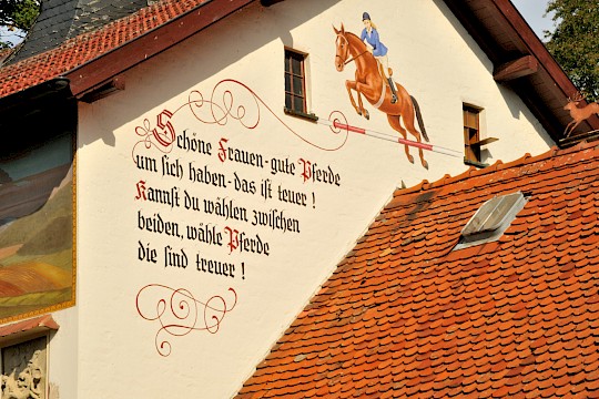 - Pensionsstall: 45 Pferdeboxen, 7 Paddocks, ca. 13 ha Koppeln, Solarium, beheizte Sattelkammern, Waschplatz