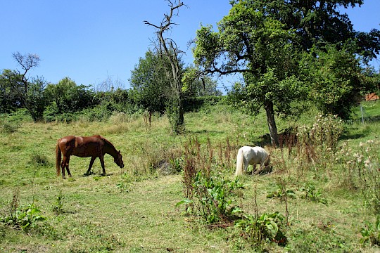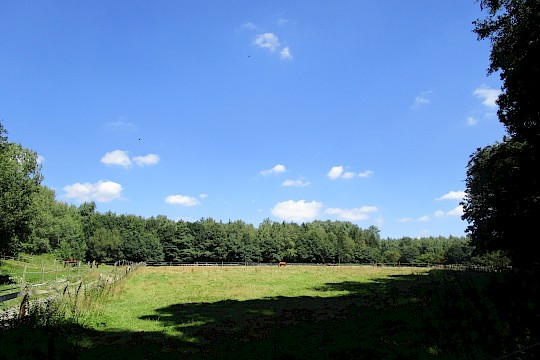 Der Rettershof liegt eingebettet in die sanften Hügel des Taunus – umgeben von Wäldern, Wiesen und weiten Feldern. Wanderwege, Reitpfade und kleine Waldwege laden dazu ein, die Natur direkt vor der Haustür zu erkunden. Ob Spaziergang, Fahrradtour oder einfach eine Pause im Grünen – hier findet man Erholung, Weitblick und Ruhe.