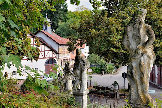 Wie das Hofgut selbst, erzählt auch die umgebende Landschaft von ihrer langen Geschichte. Alte Feldwege folgen noch heute den Linien vergangener Jahrhunderte, lichte Waldstücke öffnen sich zu weitläufigen Wiesen, fruchtbaren Landwirtschaftsflächen und gepflegten Pferdekoppeln. Der Rettershofer Bach schlängelt sich durch das Tal und begleitet Spaziergänger mit seinem leisen Plätschern. Immer wieder eröffnen sich Ausblicke, die den Blick in die Ferne tragen und zum Verweilen einladen.